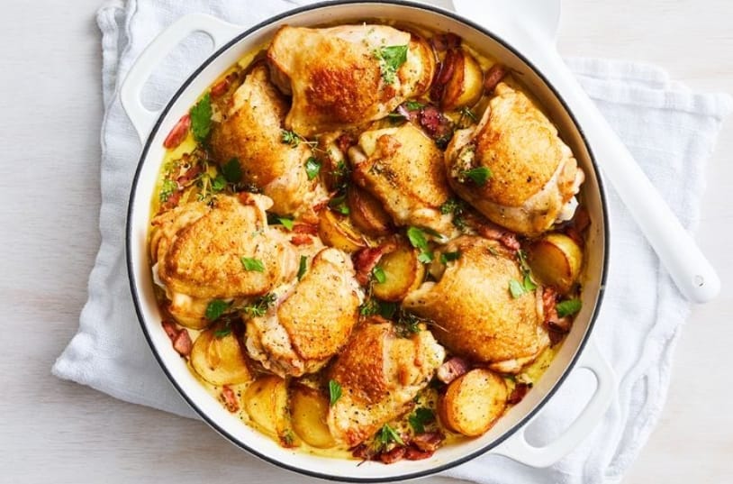 Imagine crispy chicken thighs, golden potatoes, and smoky bacon all swimming together in a creamy Dijon mustard sauce. Yes, it's as good as it sounds. This one-pan wonder is a game-changer for those busy nights when you want something scrumptious but don't have the time for a culinary marathon.